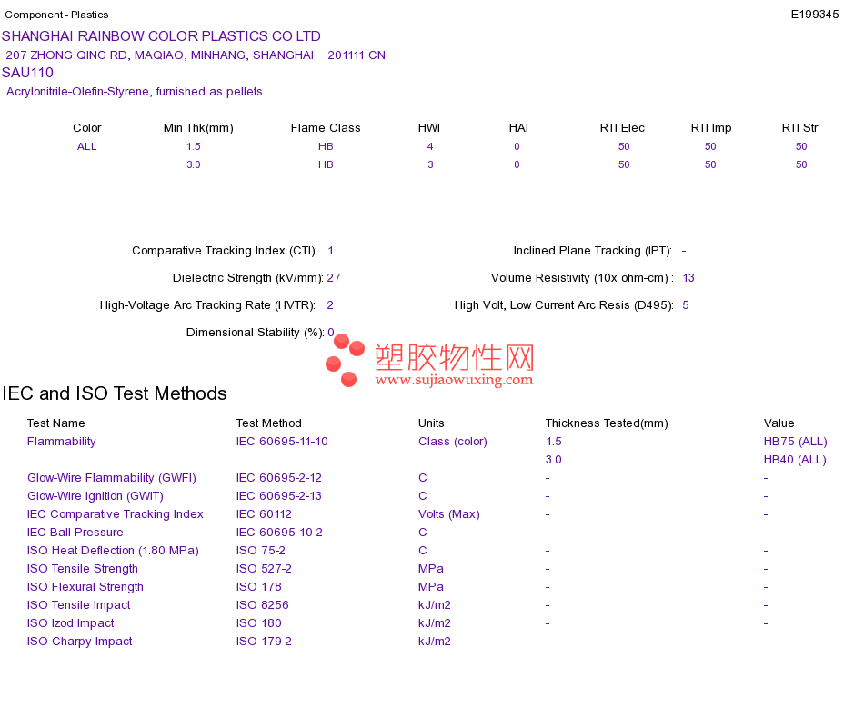 Acrylonitrile-Olefin-Styrene SAU110UL黄卡资料请登陆会员后查看,如需电子档资料,请联系客服! 赵生:手机13424755533;QQ:27660005