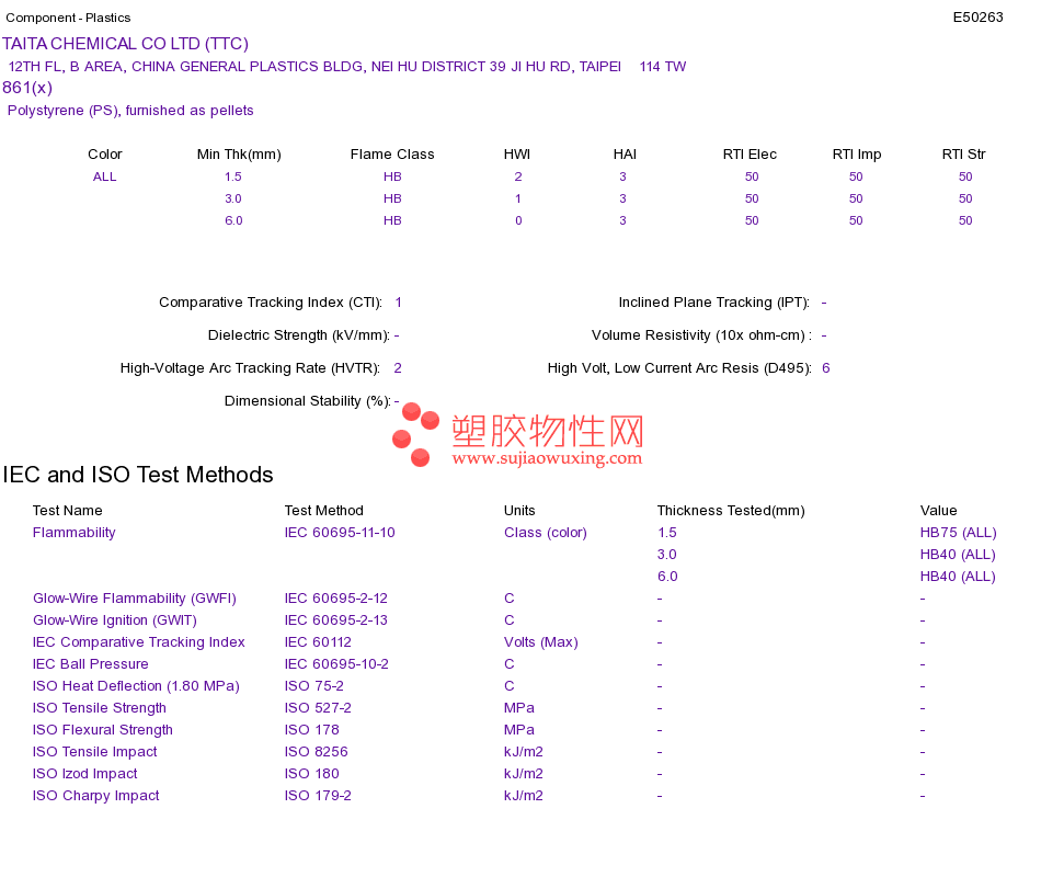 Polystyrene (PS) 861(x)UL黄卡资料请登陆会员后查看,如需电子档资料,请联系客服! 赵生:手机13424755533;QQ:27660005