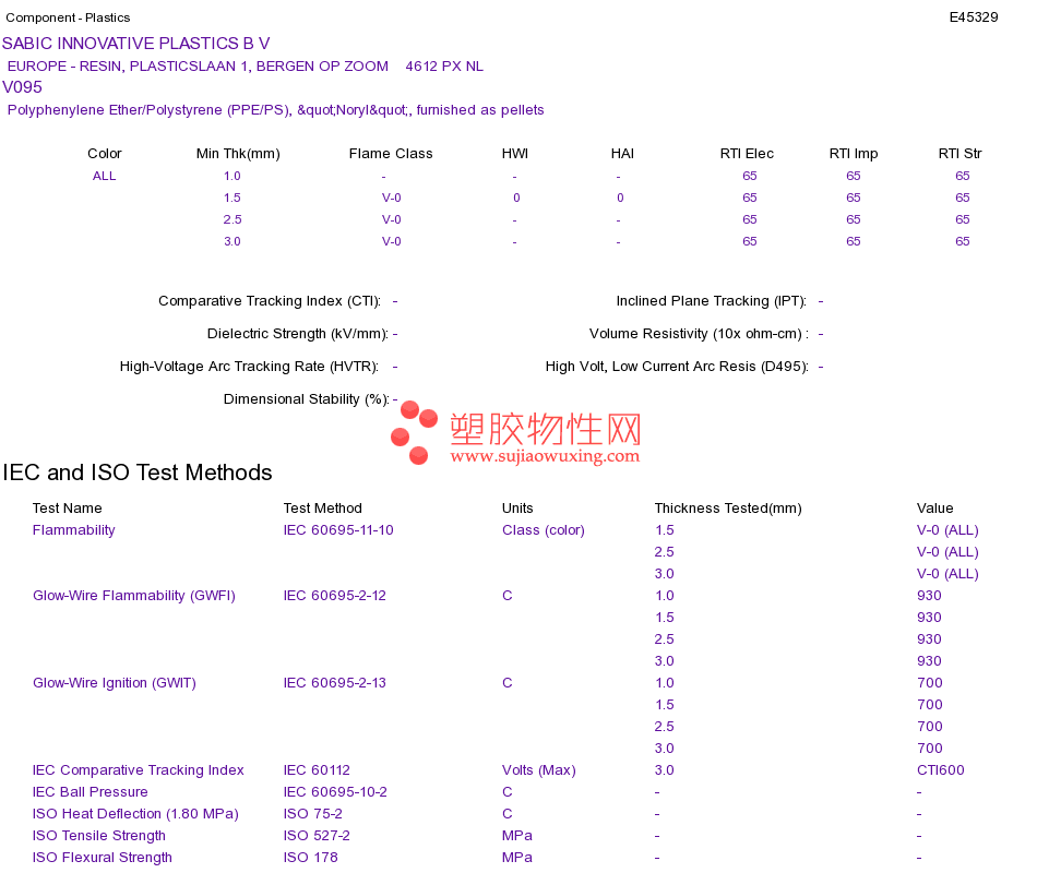Polyphenylene Ether/Polystyrene (PPE/PS) V095UL黄卡资料请登陆会员后查看,如需电子档资料,请联系客服! 赵生:手机13424755533;QQ:27660005