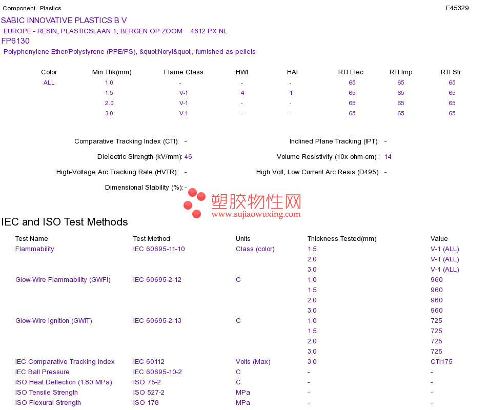 Polyphenylene Ether/Polystyrene (PPE/PS) FP6130UL黄卡资料请登陆会员后查看,如需电子档资料,请联系客服! 赵生:手机13424755533;QQ:27660005