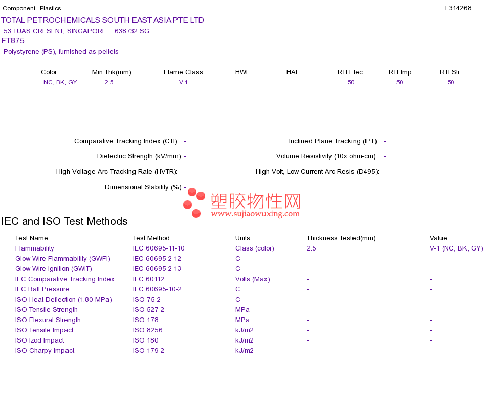 Polystyrene (PS) FT875UL黄卡资料请登陆会员后查看,如需电子档资料,请联系客服! 赵生:手机13424755533;QQ:27660005