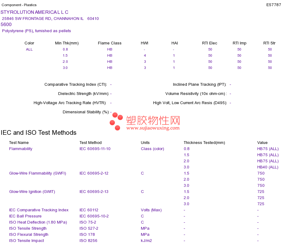 Polystyrene (PS) 5600UL黄卡资料请登陆会员后查看,如需电子档资料,请联系客服! 赵生:手机13424755533;QQ:27660005
