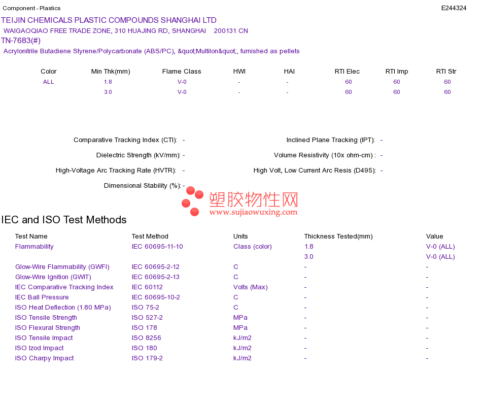 Acrylonitrile Butadiene Styrene/Polycarbonate (ABS/PC) TN-7683(#)UL黄卡资料请登陆会员后查看,如需电子档资料,请联系客服! 赵生:手机13424755533;QQ:27660005