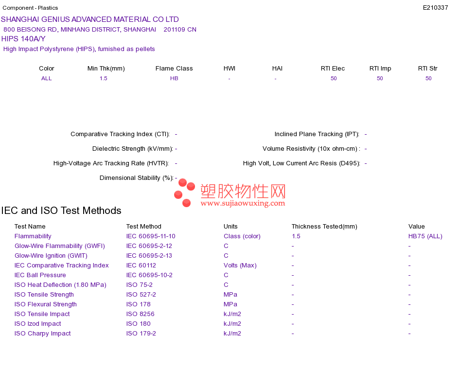 High Impact Polystyrene (HIPS) HIPS 140A/YUL黄卡资料请登陆会员后查看,如需电子档资料,请联系客服! 赵生:手机13424755533;QQ:27660005
