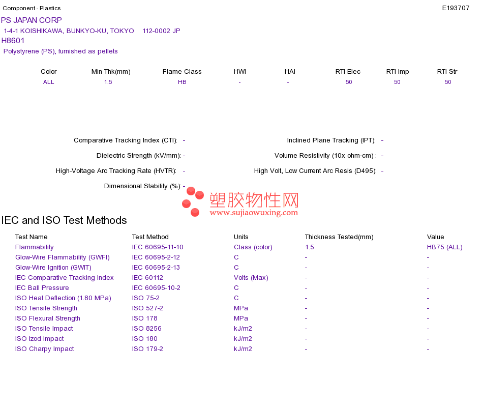 Polystyrene (PS) H8601UL黄卡资料请登陆会员后查看,如需电子档资料,请联系客服! 赵生:手机13424755533;QQ:27660005