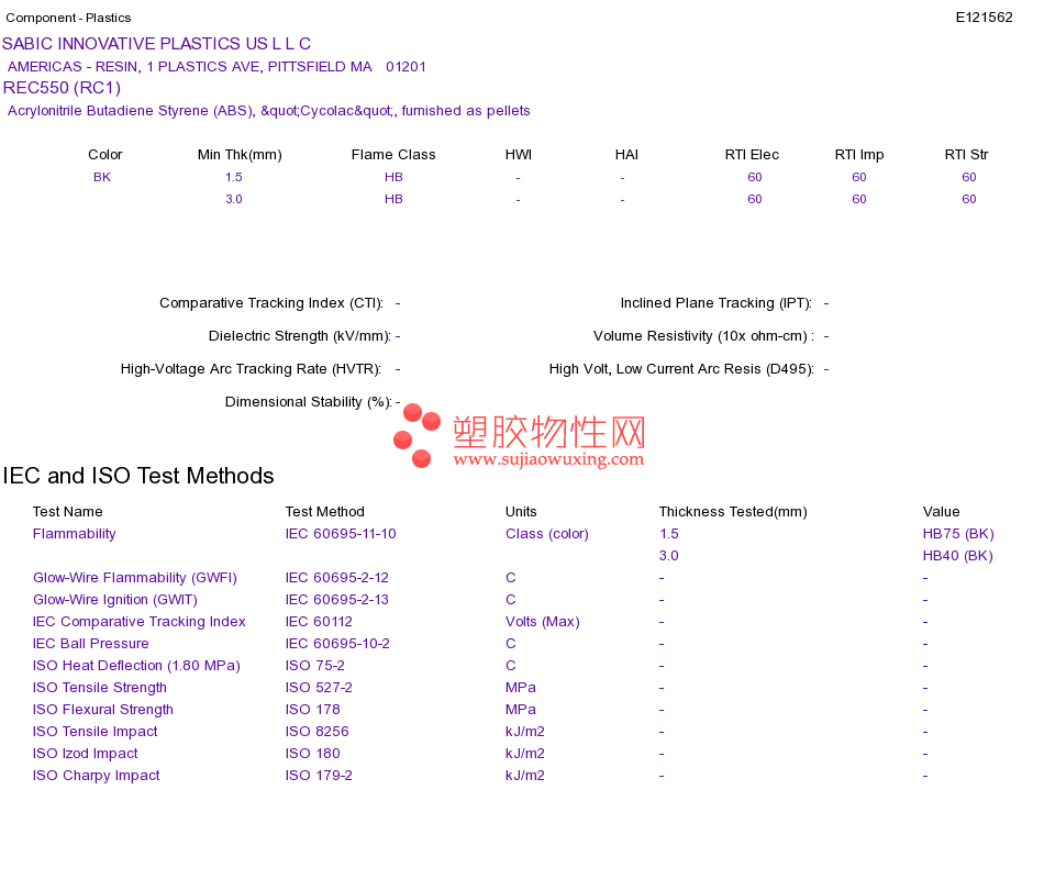 Acrylonitrile Butadiene Styrene (ABS) REC550 (RC1)UL黄卡资料请登陆会员后查看,如需电子档资料,请联系客服! 赵生:手机13424755533;QQ:27660005