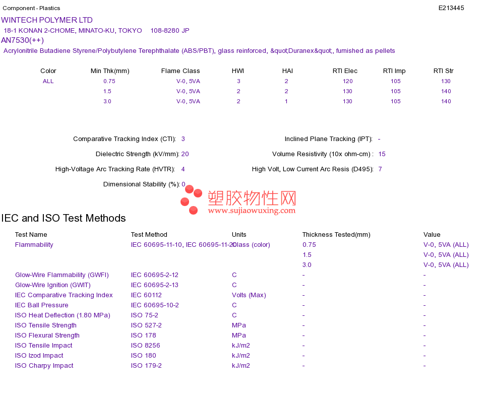 Acrylonitrile Butadiene Styrene/Polybutylene Terephthalate (ABS/PBT) AN7530(++)UL黄卡资料请登陆会员后查看,如需电子档资料,请联系客服! 赵生:手机13424755533;QQ:27660005