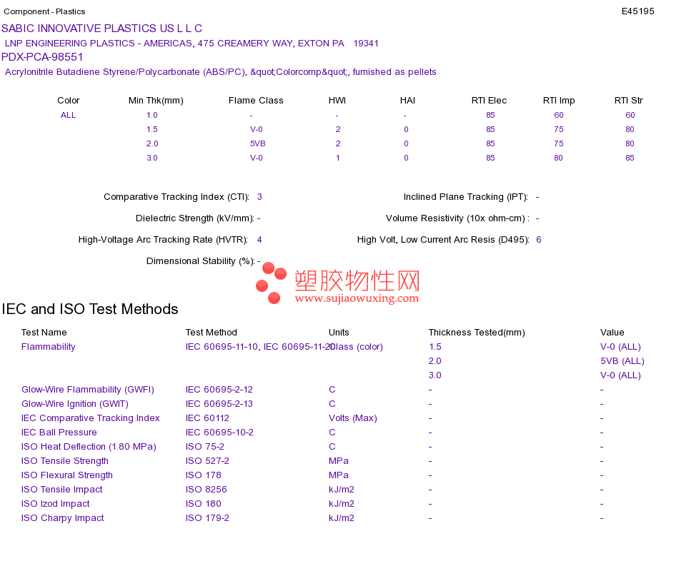 Acrylonitrile Butadiene Styrene/Polycarbonate (ABS/PC) PDX-PCA-98551UL黄卡资料请登陆会员后查看,如需电子档资料,请联系客服! 赵生:手机13424755533;QQ:27660005