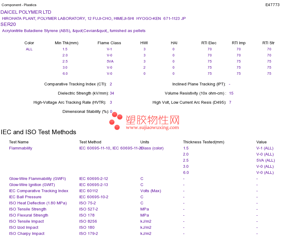 Acrylonitrile Butadiene Styrene (ABS) SER20UL黄卡资料请登陆会员后查看,如需电子档资料,请联系客服! 赵生:手机13424755533;QQ:27660005