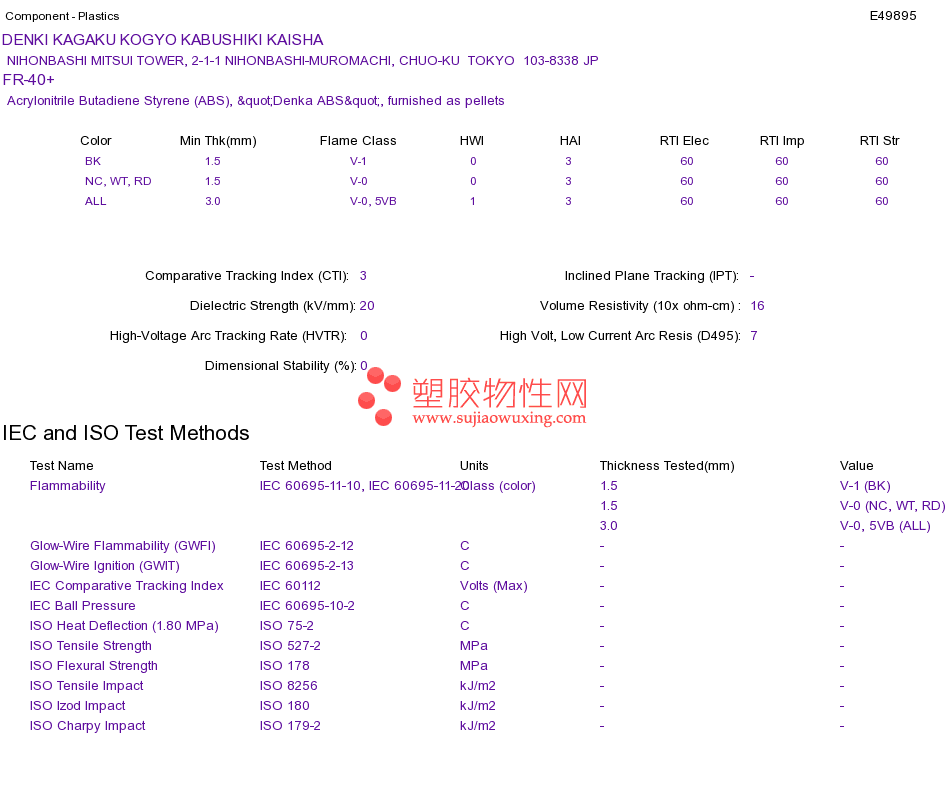 Acrylonitrile Butadiene Styrene (ABS) FR-40+UL黄卡资料请登陆会员后查看,如需电子档资料,请联系客服! 赵生:手机13424755533;QQ:27660005