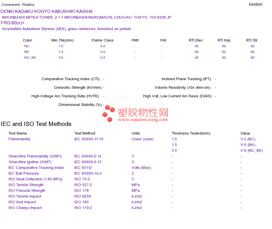 Acrylonitrile Butadiene Styrene (ABS) FRG-80(x)+UL黄卡资料请登陆会员后查看,如需电子档资料,请联系客服! 赵生:手机13424755533;QQ:27660005