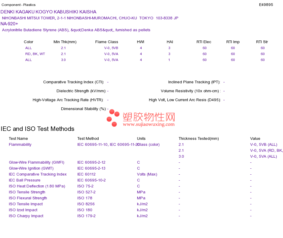 Acrylonitrile Butadiene Styrene (ABS) NA-920+UL黄卡资料请登陆会员后查看,如需电子档资料,请联系客服! 赵生:手机13424755533;QQ:27660005