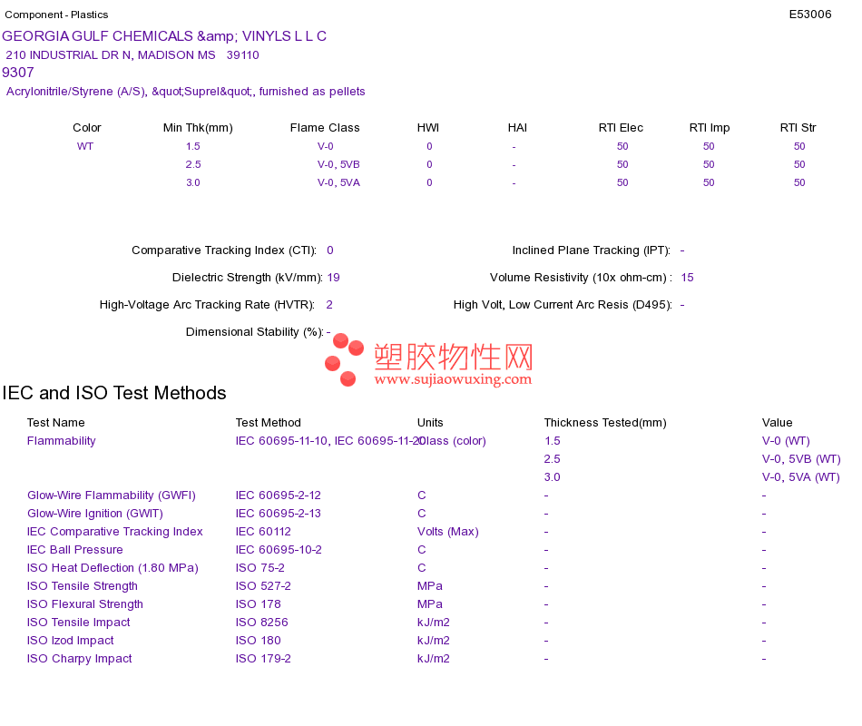 Acrylonitrile/Styrene (A/S) 9307UL黄卡资料请登陆会员后查看,如需电子档资料,请联系客服! 赵生:手机13424755533;QQ:27660005