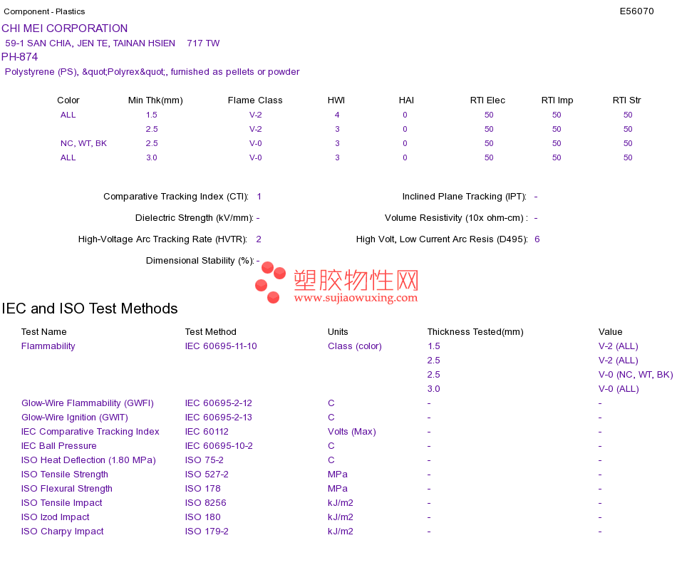 Polystyrene (PS) PH-874UL黄卡资料请登陆会员后查看,如需电子档资料,请联系客服! 赵生:手机13424755533;QQ:27660005
