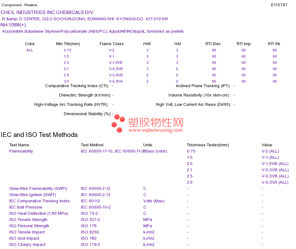 Acrylonitrile Butadiene Styrene/Polycarbonate (ABS/PC) NH-1088(+)UL黄卡资料请登陆会员后查看,如需电子档资料,请联系客服! 赵生:手机13424755533;QQ:27660005