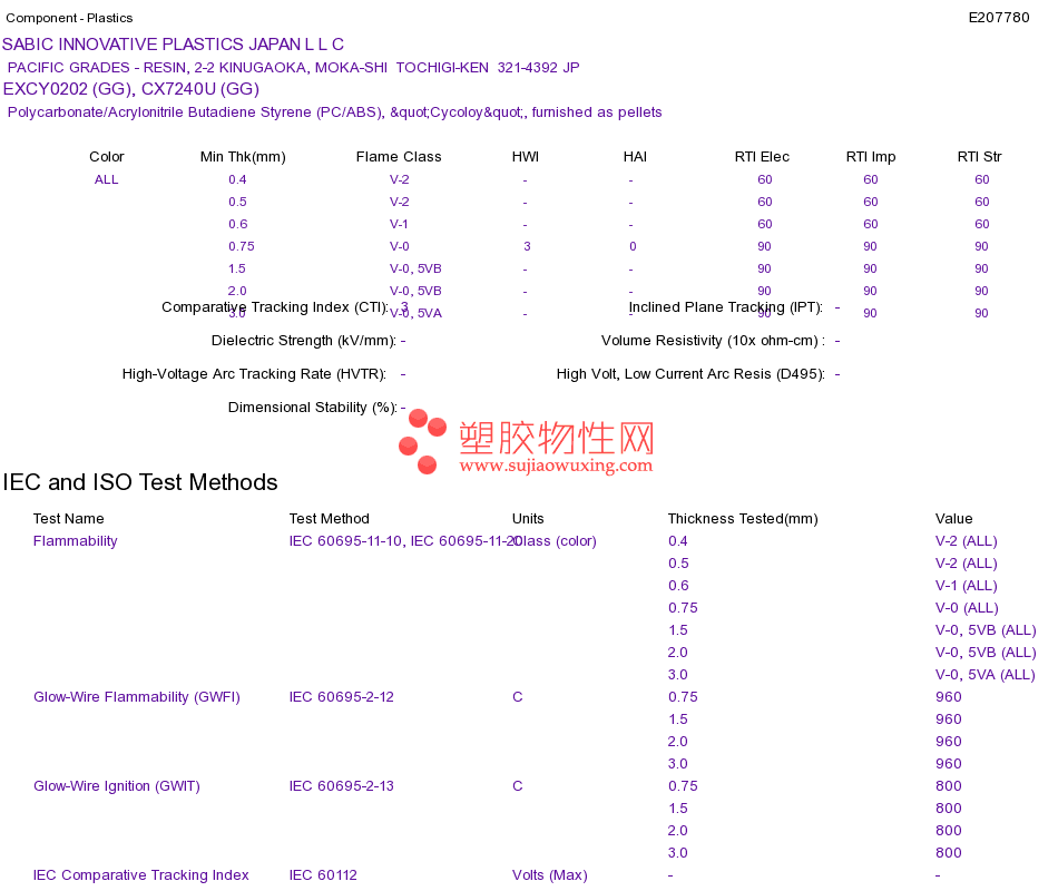 Polycarbonate/Acrylonitrile Butadiene Styrene (PC/ABS) EXCY0202 (GG), CX7240U (GG)UL黄卡资料请登陆会员后查看,如需电子档资料,请联系客服! 赵生:手机13424755533;QQ:27660005
