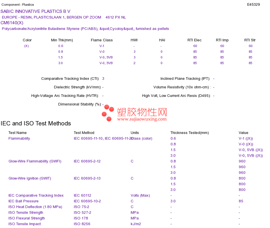 Polycarbonate/Acrylonitrile Butadiene Styrene (PC/ABS) CM6140(X)UL黄卡资料请登陆会员后查看,如需电子档资料,请联系客服! 赵生:手机13424755533;QQ:27660005