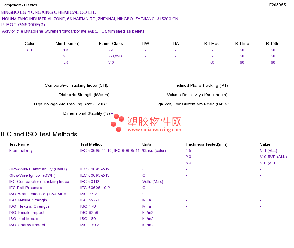 Acrylonitrile Butadiene Styrene/Polycarbonate (ABS/PC) LUPOY GN5009F(#)UL黄卡资料请登陆会员后查看,如需电子档资料,请联系客服! 赵生:手机13424755533;QQ:27660005