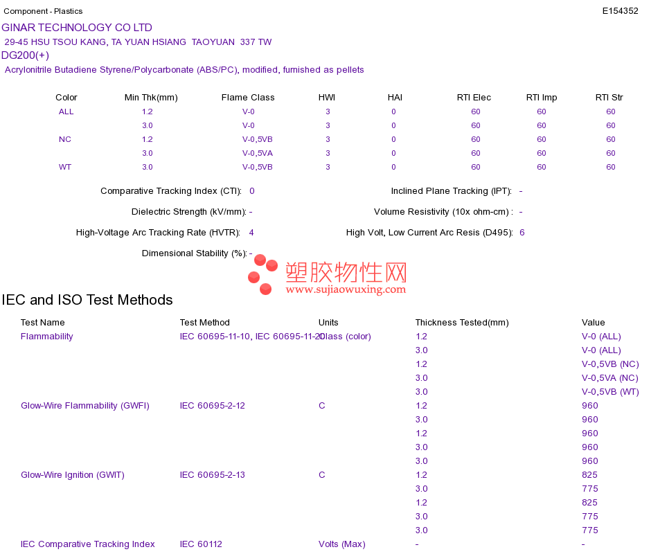 Acrylonitrile Butadiene Styrene/Polycarbonate (ABS/PC) DG200(+)UL黄卡资料请登陆会员后查看,如需电子档资料,请联系客服! 赵生:手机13424755533;QQ:27660005