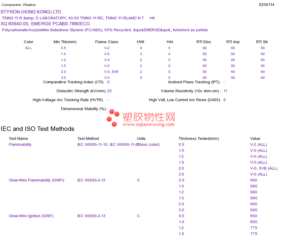 Polycarbonate/Acrylonitrile Butadiene Styrene (PC/ABS) XQ 83640.00, EMERGE PCABS 7880ECOUL黄卡资料请登陆会员后查看,如需电子档资料,请联系客服! 赵生:手机13424755533;QQ:27660005
