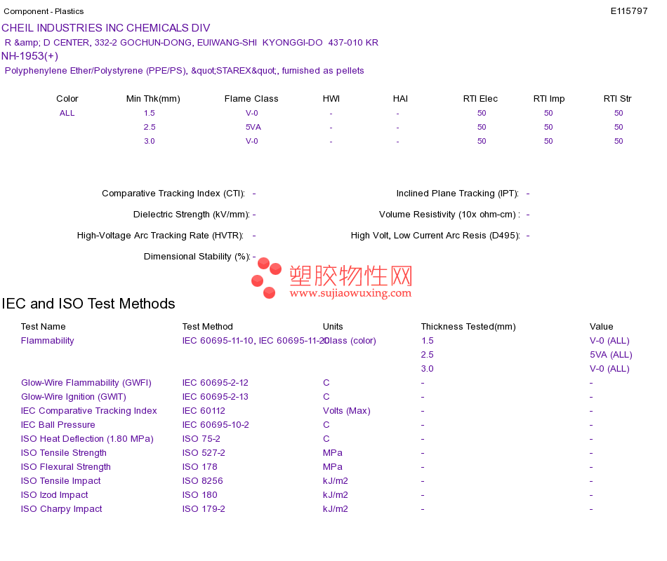 Polyphenylene Ether/Polystyrene (PPE/PS) NH-1953(+)UL黄卡资料请登陆会员后查看,如需电子档资料,请联系客服! 赵生:手机13424755533;QQ:27660005