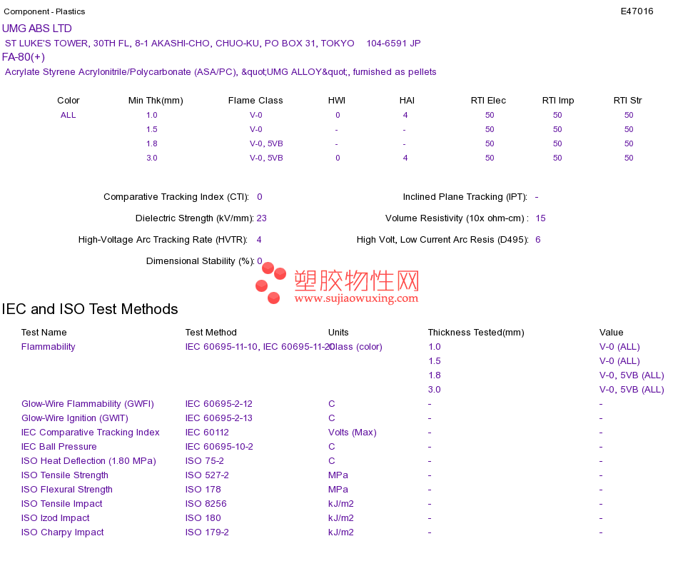 Acrylate Styrene Acrylonitrile/Polycarbonate (ASA/PC) FA-80(+)UL黄卡资料请登陆会员后查看,如需电子档资料,请联系客服! 赵生:手机13424755533;QQ:27660005