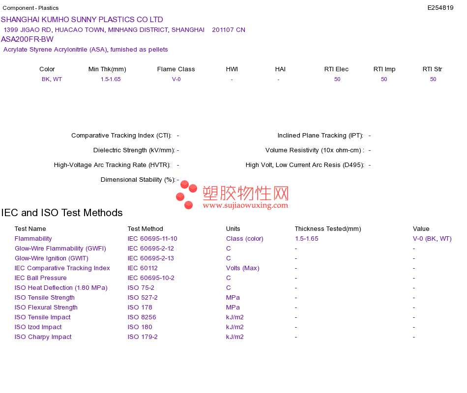 Acrylate Styrene Acrylonitrile (ASA) ASA200FR-BWUL黄卡资料请登陆会员后查看,如需电子档资料,请联系客服! 赵生:手机13424755533;QQ:27660005