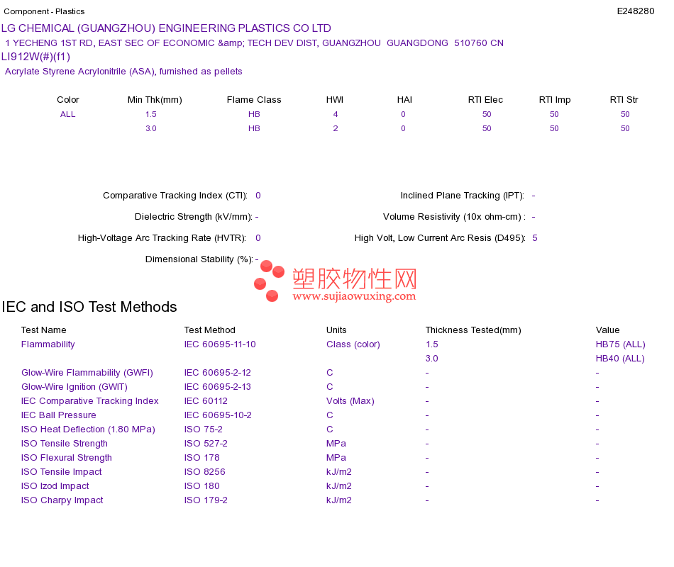 Acrylate Styrene Acrylonitrile (ASA) LI912W(#)(f1)UL黄卡资料请登陆会员后查看,如需电子档资料,请联系客服! 赵生:手机13424755533;QQ:27660005