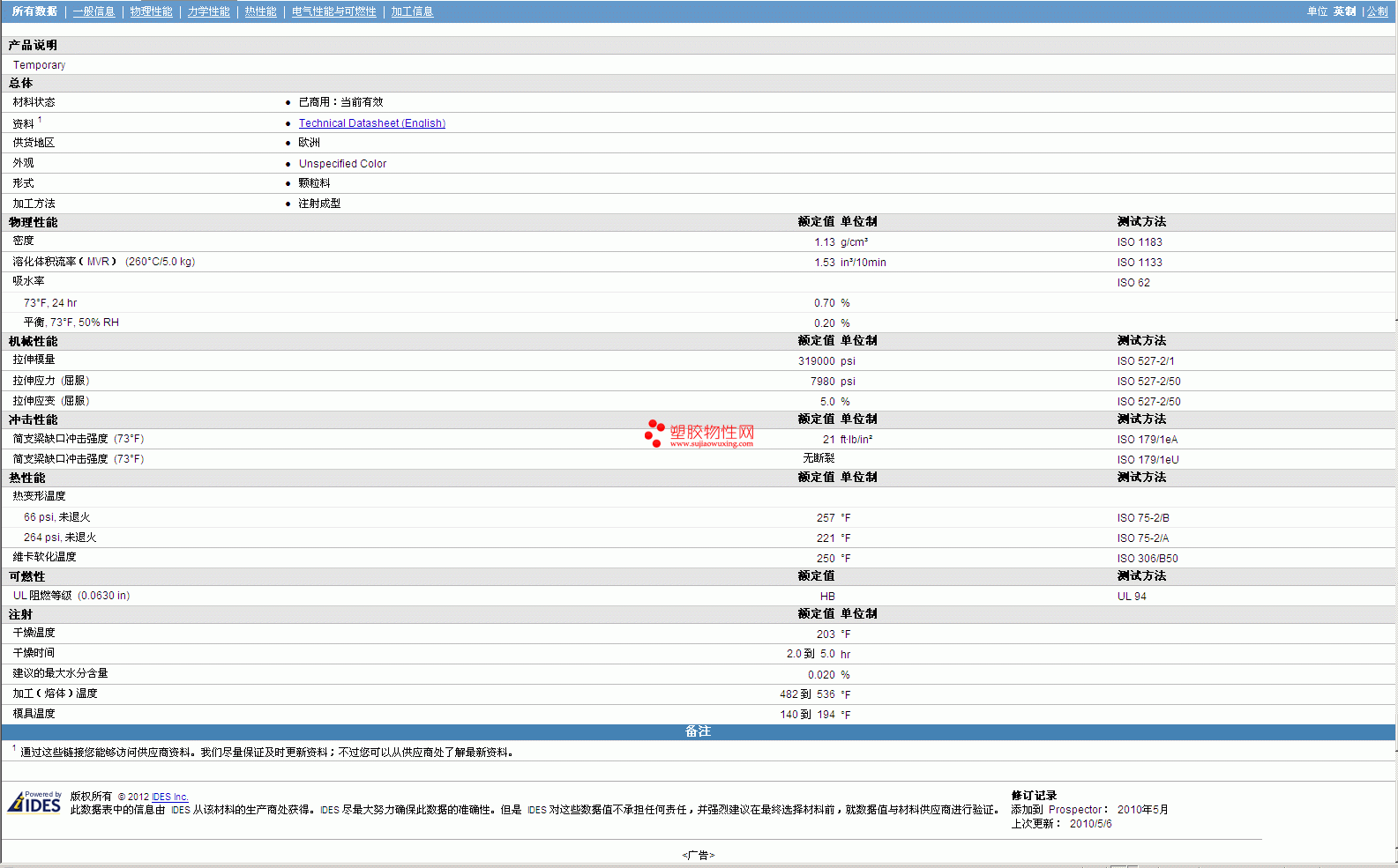 其他工程塑料物性表