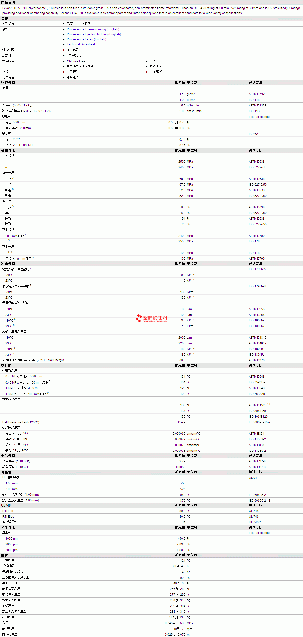 LEXAN PC CFR7630 Resin物性表更多资料见图