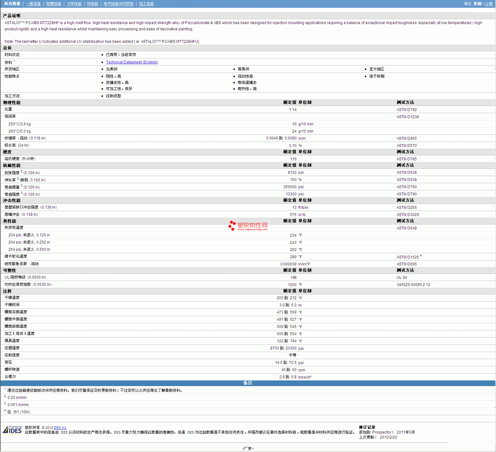 | 收缩率 - 流动 (0.118 in) | 0.0040 到 0.0080 | in/in | ASTM D955 |