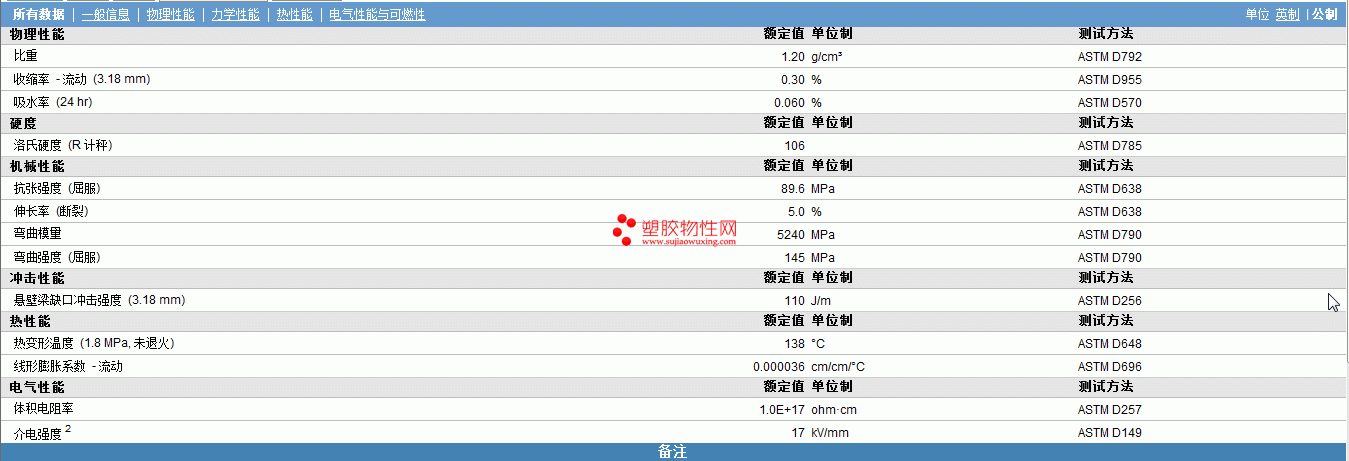 | 机械性能 | 额定值 | 单位制 | 测试方法 |