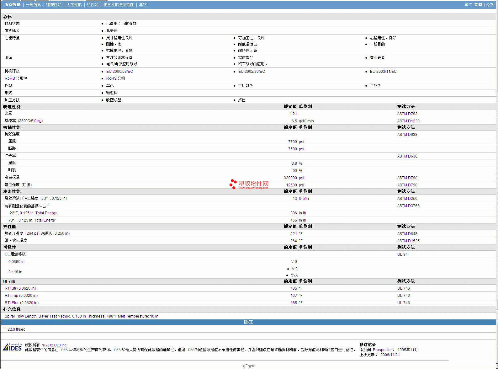 其他工程塑料物性表