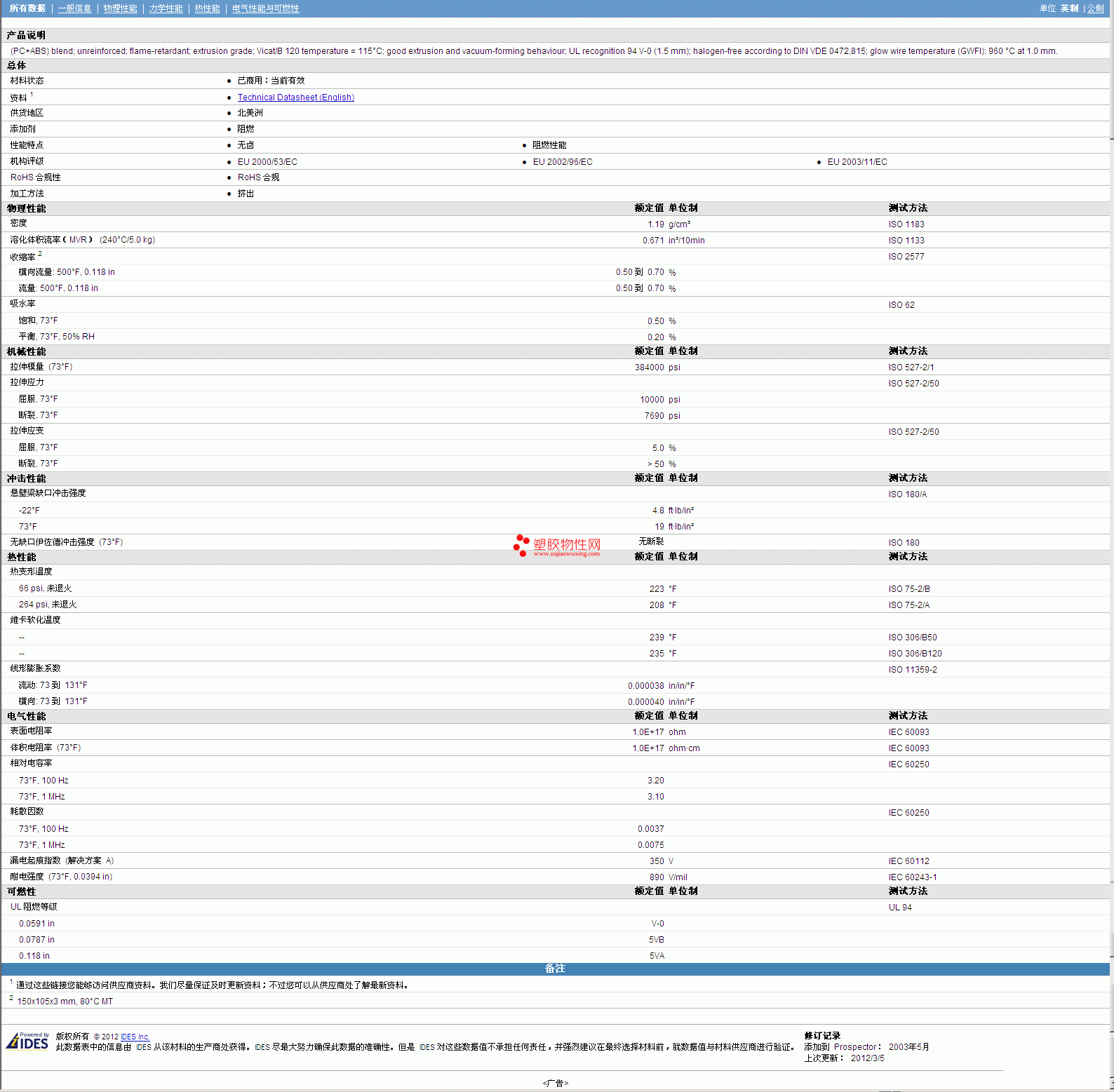 | 溶化体积流率(MVR) (240°C/5.0 kg) | 0.671 | in³/10min | ISO 1133 |