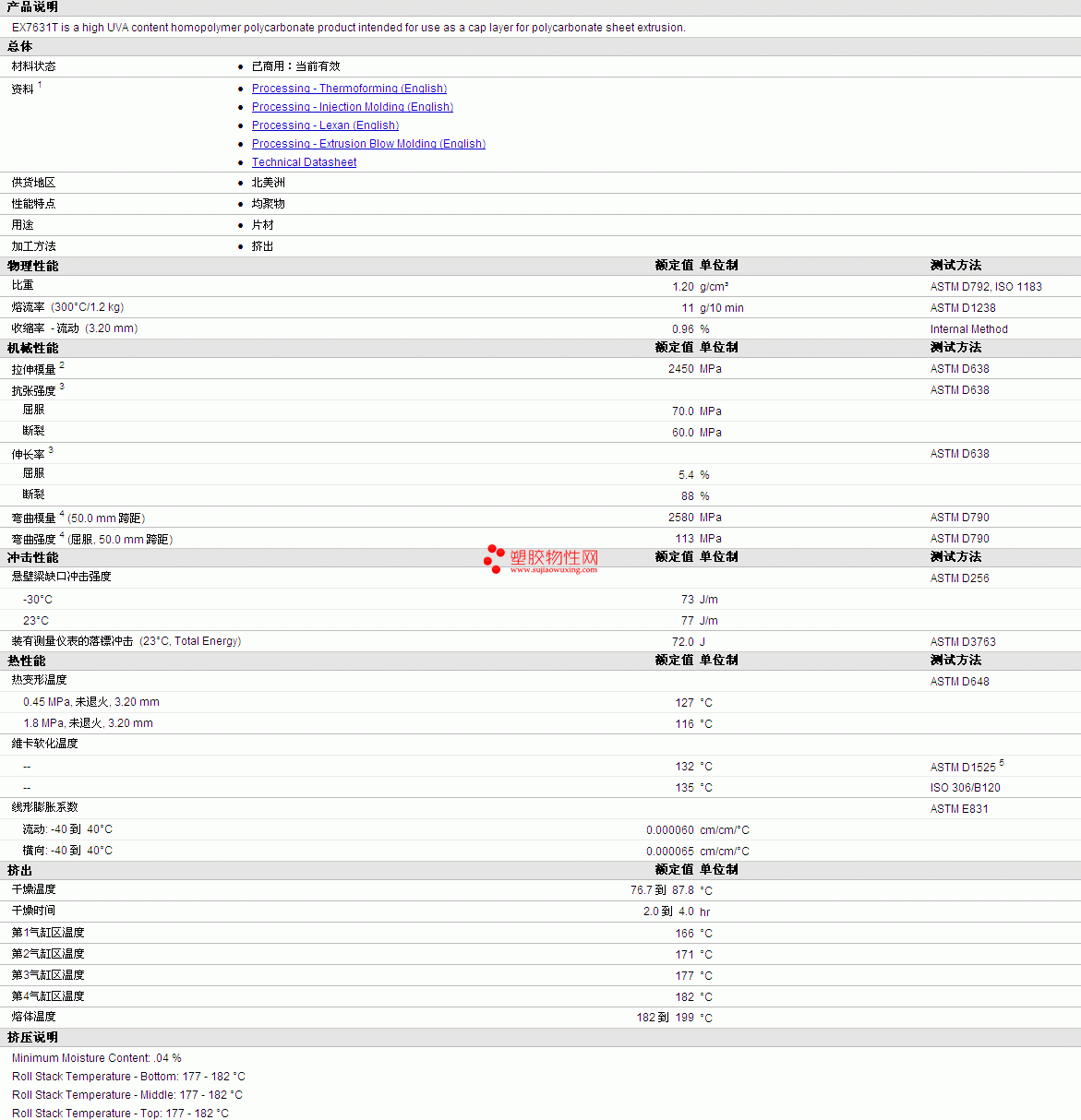 LEXAN PC EX7631T Resin物性表详细情况如图