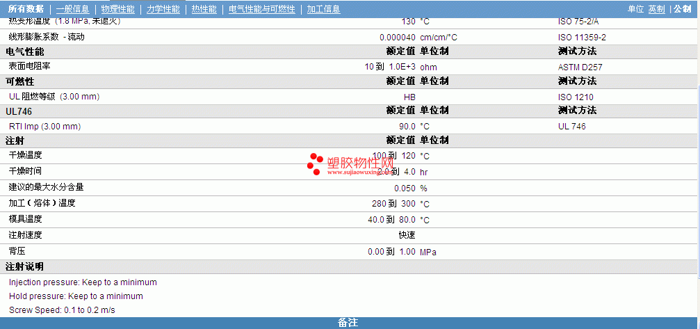 | 机械性能 | 额定值 | 单位制 | 测试方法 |
