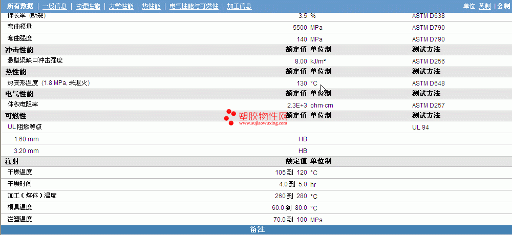 | 机械性能 | 额定值 | 单位制 | 测试方法 |