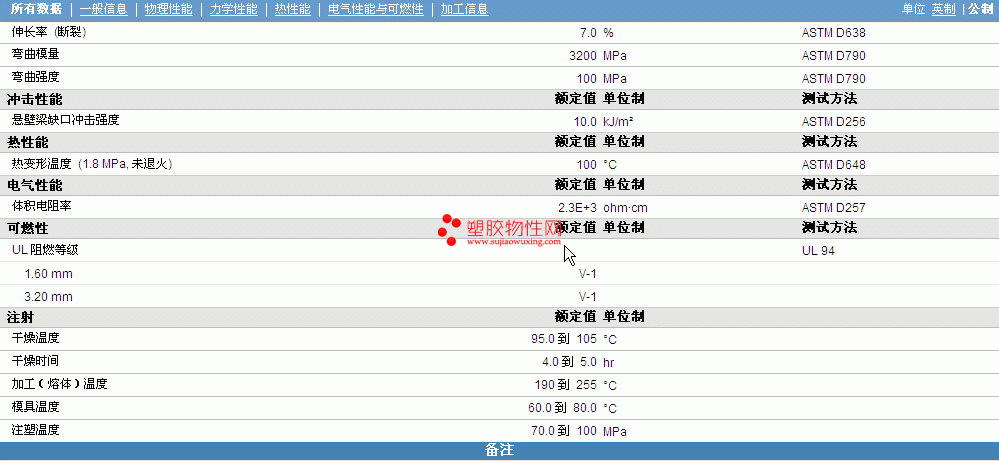 | 机械性能 | 额定值 | 单位制 | 测试方法 |