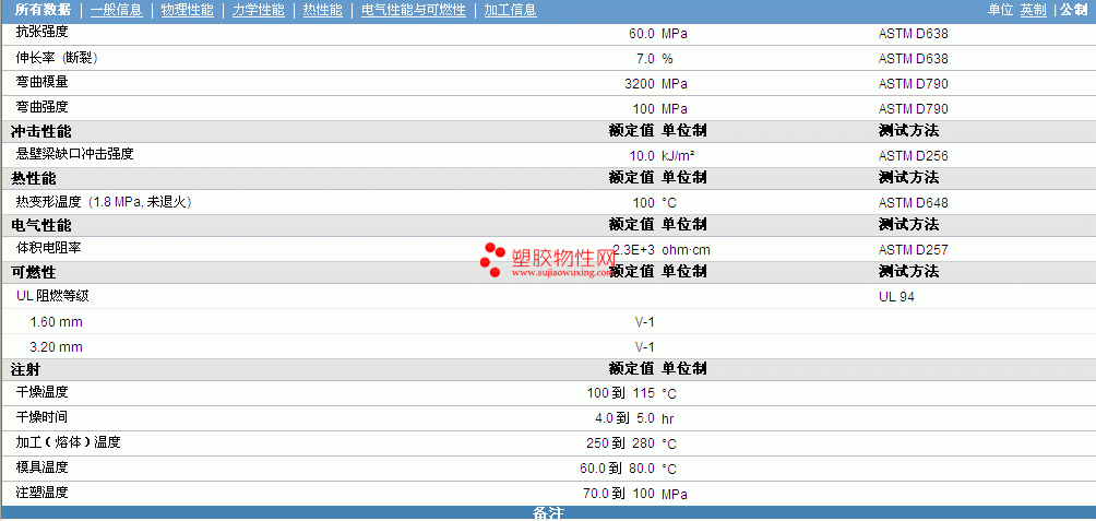 | 机械性能 | 额定值 | 单位制 | 测试方法 |
