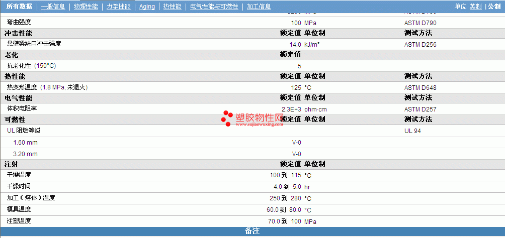 | 机械性能 | 额定值 | 单位制 | 测试方法 |