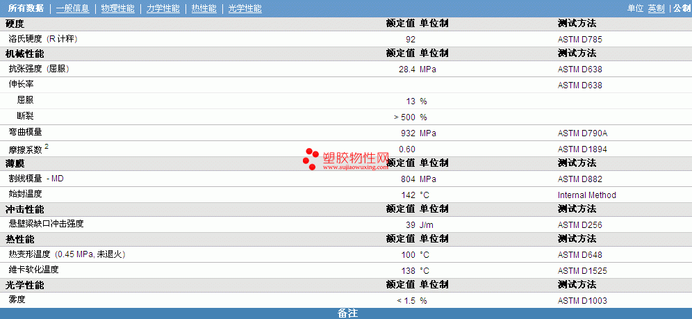 | 硬度 | 额定值 | 单位制 | 测试方法 |