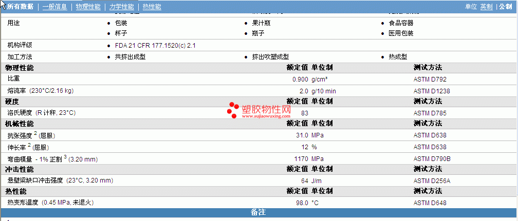 | 机械性能 | 额定值 | 单位制 | 测试方法 |