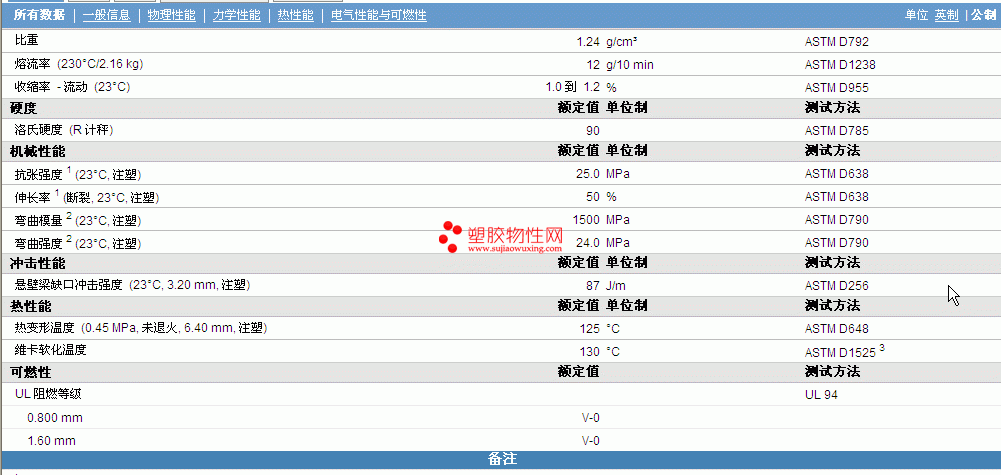 | 机械性能 | 额定值 | 单位制 | 测试方法 |