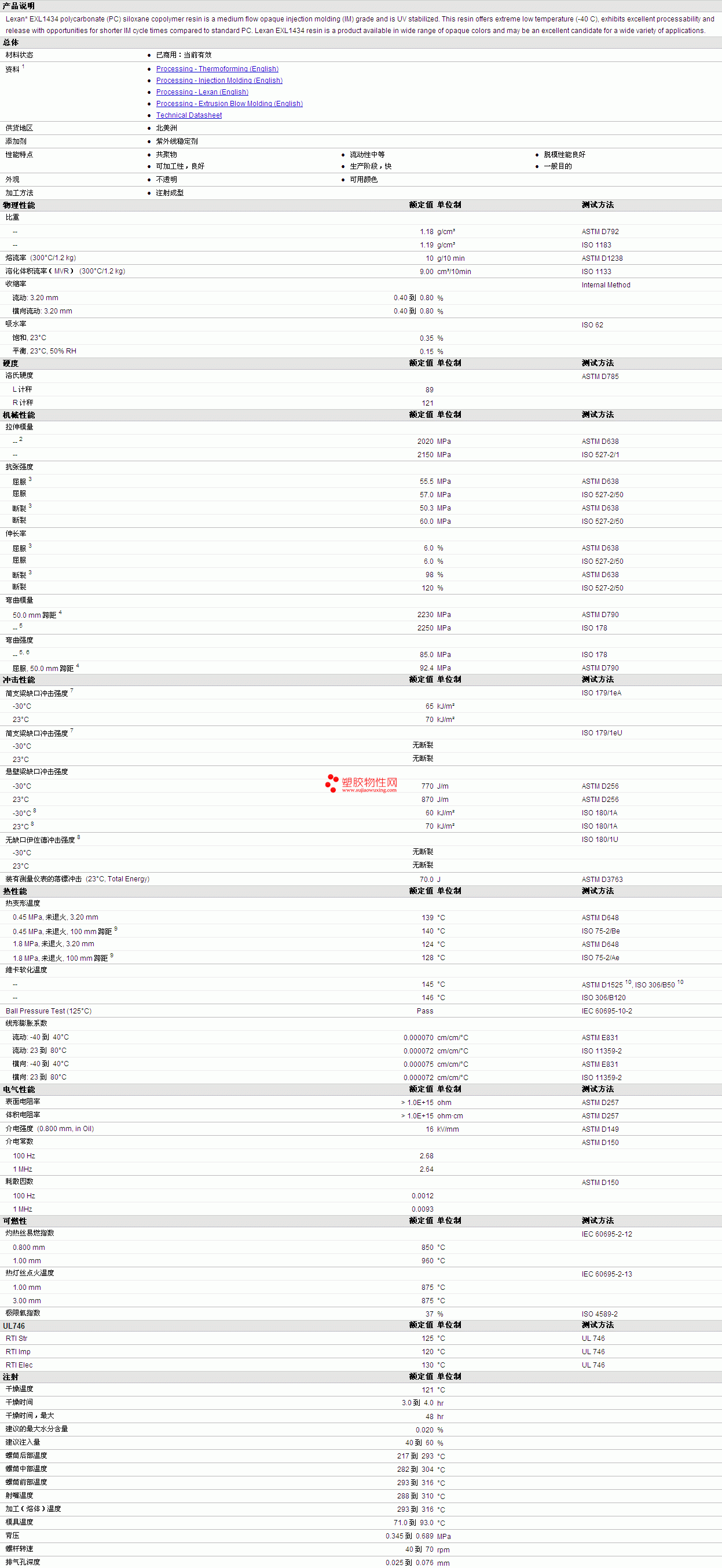 LEXAN PC EXL1434 Resin物性表详细情况如图