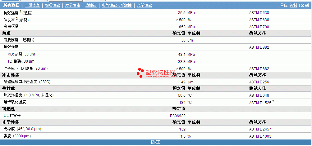 | 机械性能 | 额定值 | 单位制 | 测试方法 |