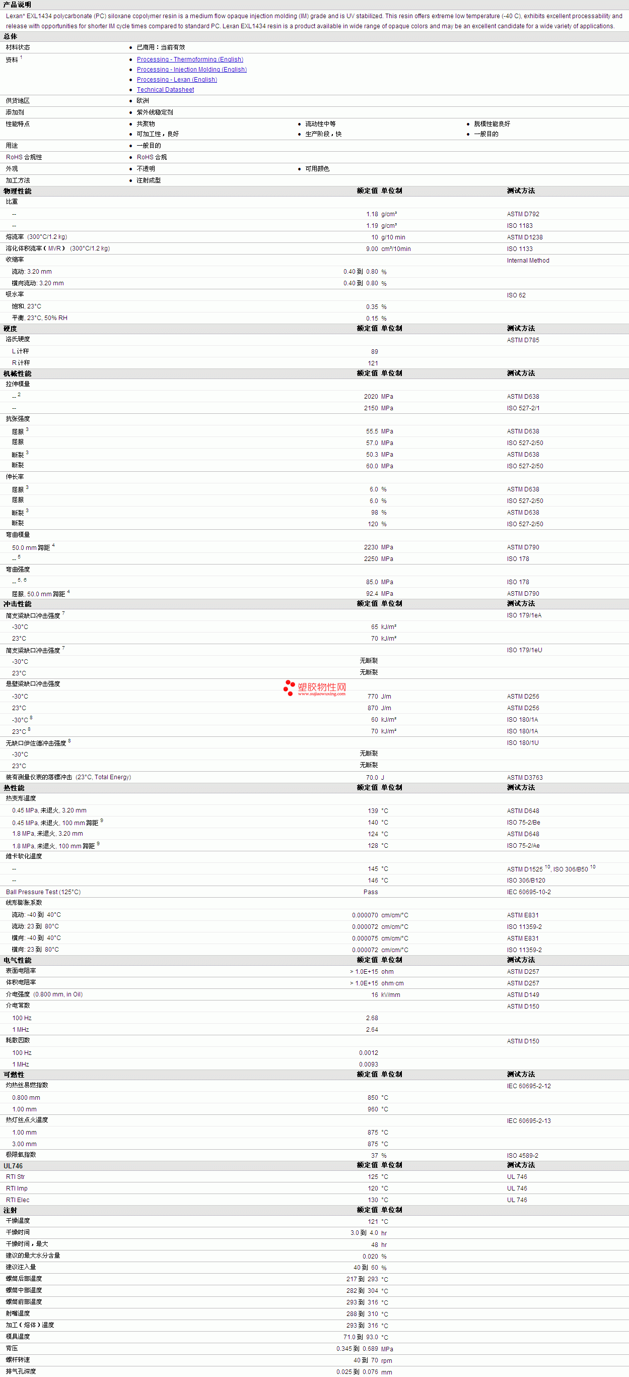 LEXAN PC EXL1434 Resin物性表更多资料见图