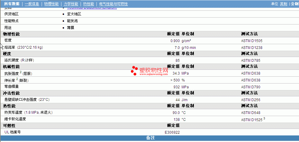 | 机械性能 | 额定值 | 单位制 | 测试方法 |