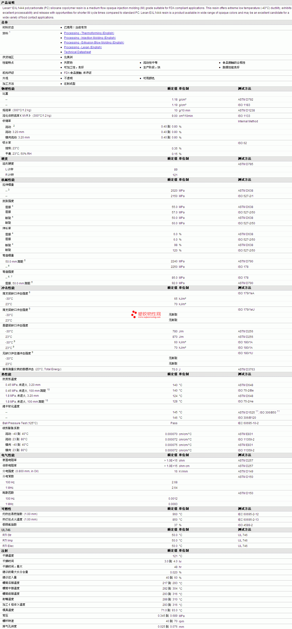 LEXAN PC EXL1444 Resin物性表详情见附件