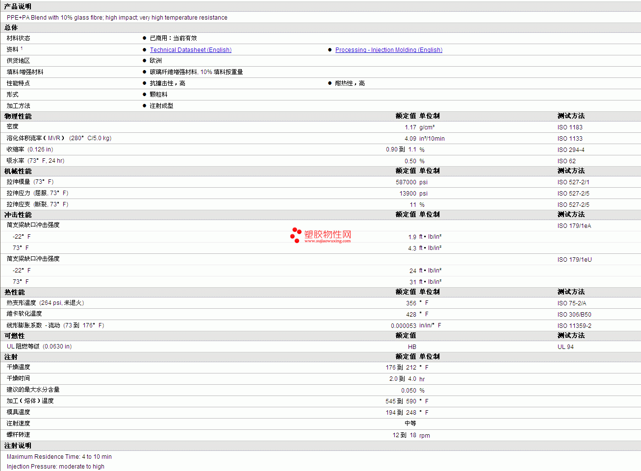 | 机械性能 | 额定值 | 单位制 | 测试方法 |