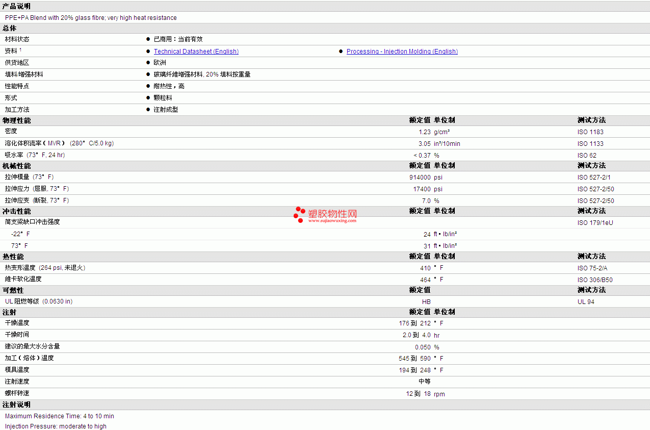 | 溶化体积流率(MVR) (280°C/5.0 kg) | 3.05 | in³/10min | ISO 1133 |